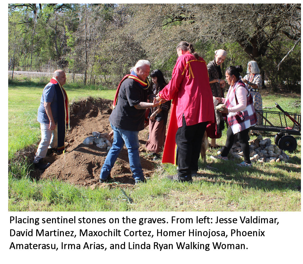 On March 19, 2024, with the help of Chief Investigator James Strunk, the Tribe received the remains of eight Ancestors from the Coryell County Sheriff’s Department. These remains included those of both adults and children, ranging in age from very young to teenagers and individuals in their early 20s. In accordance with our traditions, as directed by Tribe Vice-Chairman Robert Soto, the Ancestors were respectfully prepared within Caren Ruiz-Gaetz's tipi, Divine Grace. They were honored through ceremony before being reinterred the following day on Caren's private land, near their original resting place. The reburial restored dignity and respect to the young Ancestors after decades of displacement.
