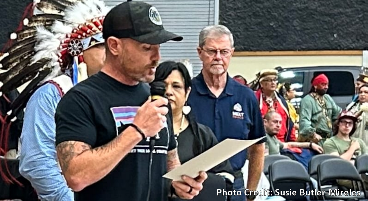 Bernard Barcena, the Chairman of the Tribe, accepted the honor, while Tribal Councilman and Combat Army Veteran Daniel Villarreal, who serves as the Tribe’s Administrator of Veteran Services, introduced Barker, who read the declaration aloud. Following the signatures of both Barker and Barcena on the certificate, the audience responded with applause, accompanied by the loud drum rolls of the Pow Wow drums.